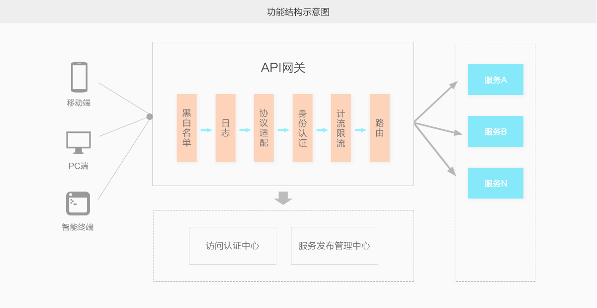 API網關(API Gateway)是API托管服務。提供API的完整生命周期管理,包括創建、維護、發布、運行、下線等。